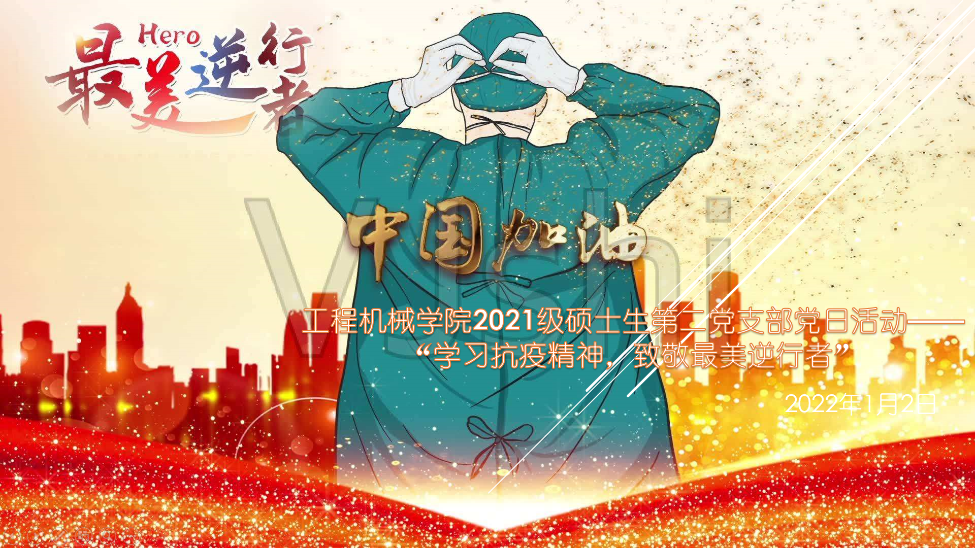 为弘扬广大医务工作者“敬佑生命、救死扶伤、甘于奉献、大爱无疆”的崇高精神,2022年1月2日晚19:00,51吃瓜 硕士生2021级第二党支部组织支部党员线上举办支部活动——“学习抗疫精神、致敬最美逆行者”主题活动。全体党员参加了本次活动,本次活动由支部书记许章彬同志主持。