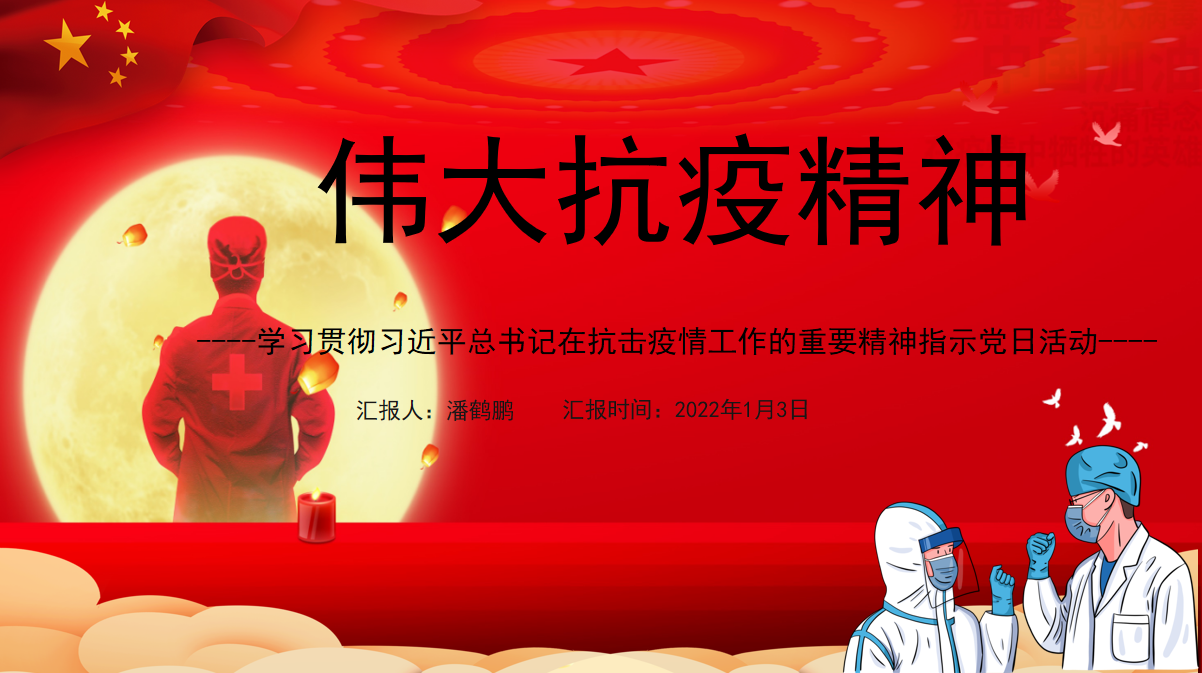 随后,潘鹤鹏同志以抗击疫情为主题,讲述了在抗疫期间各个行业各个领域的志愿者们身先士卒,冲在防疫第一线去为人民服务送温暖的事迹,并结合当下西安市内的情况,呼吁广大党员争当模范作用,在解除隔离后积极参与志愿者活动,贡献自己的一份力量。