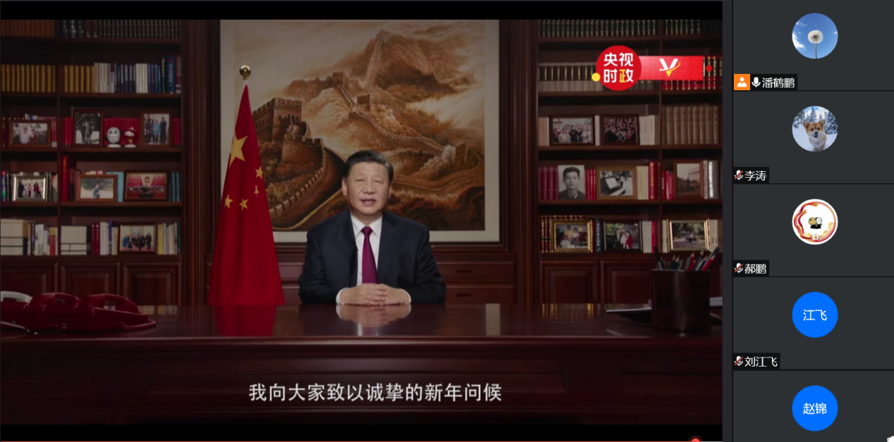 首先,潘鹤鹏同志带领大家一起观看了二零二二年习近平总书记新年贺词,同志们观看视频结束后,感想颇深,纷纷表示要积极的学习专业知识,为祖国建设舔砖加瓦。