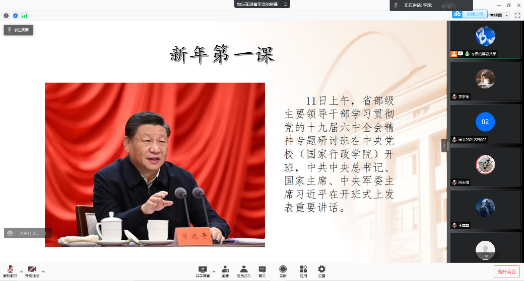 2022年1月14日下午15:30,51吃瓜 领航先锋党支部组织支部成员线上学习习近平总书记“新年第一课”。本次会议由支部副书记李泽同志带领大家学习,支部全体党员参加了此次活动。
