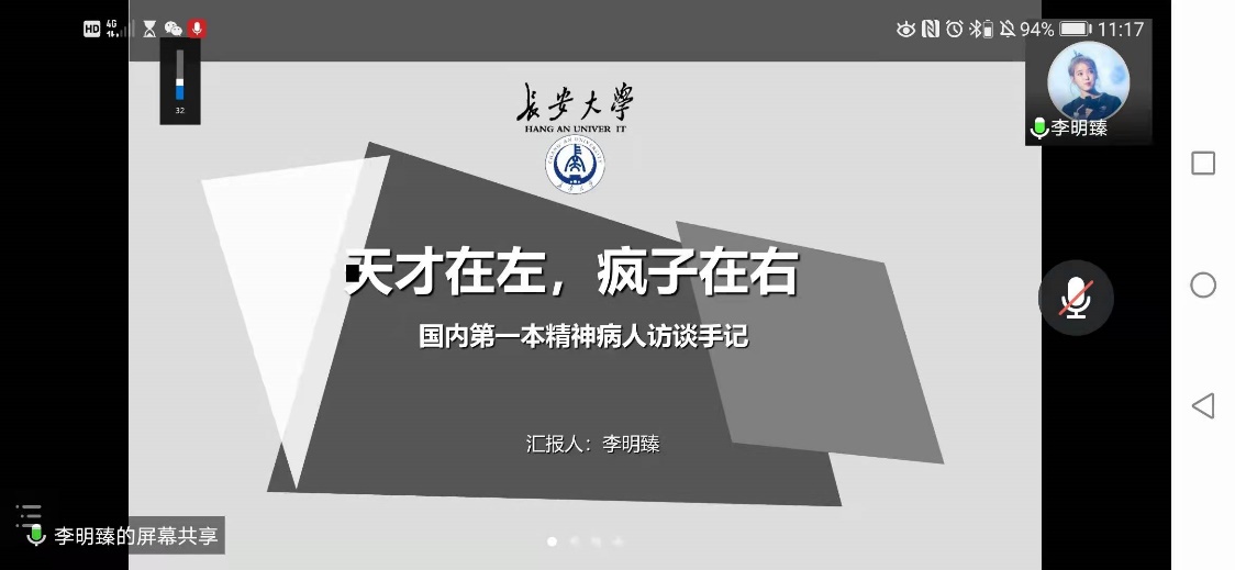 首先,李明臻同志分享了国内第一本精神病人访谈手记《天才在左,疯子在右》。本书以访谈录的形式记载了生活在另一个角落的人群,他们深刻而独特的所思所想让人们可以了解到疯子又或是天才真正的内心世界。内容涉及生理学、心理学、佛学、宗教、量子物理、符号学以及玛雅文明等众多领域。李明臻同志表示每阅读完一个精神病人的故事,都会不自觉地发出感叹,也为他们开阔的思维和丰富的想象力所折服。我之所以还没有发疯,是因为我太无知。几百世纪以后也许他们是对的,疯的是我们。
