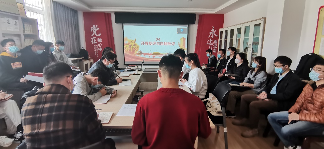 会议第四项,支部成员按照“团结-批评-团结”的原则开展批评与自我批评,针对自身以及其他党员存在的不足之处,从多方面展开批评,明确以后的努力方向。