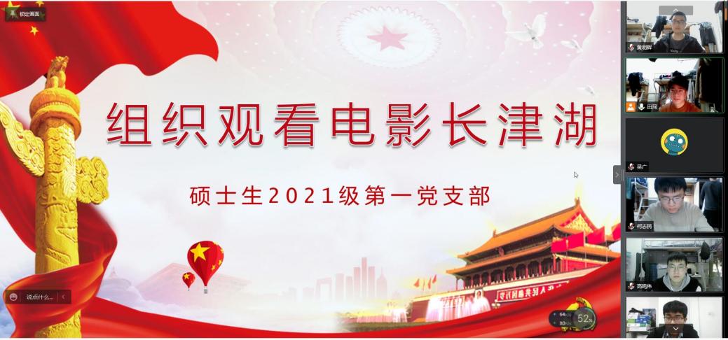 为了弘扬抗美援朝精神,增强支部成员的爱国主义情怀,2022年3月23日晚19:00,51吃瓜 硕士生2021级第一党支部组织全体党员线上观看红色电影《长津湖》,此次活动由支部书记田珂同志主持。