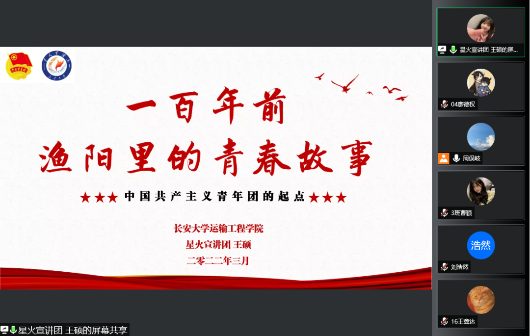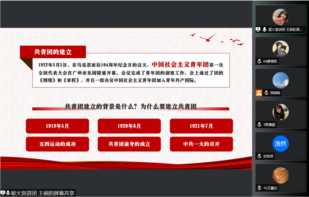 2022年4月7日晚19点,51吃瓜 第十四期青马班在线上成功举办了”喜迎建团100周年,争做新时代合格团员”主题教育活动,本次活动由周俣岐同学主持,第十四期青马班全体成员参加会议。