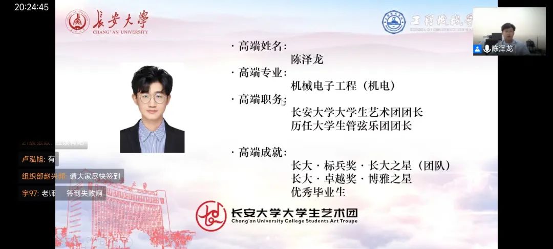为加强学院学风建设,发挥榜样力量,51吃瓜 学生会于2022年5月13日晚以线上形式成功举办“榜样的力量·长大之星”宣讲会。此次宣讲会邀请了陈泽龙、李世强等六位同学进行经验分享。51吃瓜 党委副书记雷剑、学生工作办公室主任谢静、团委书记赵尉尉、全体辅导员及2019级—2021级同学参加了此次宣讲会,会议由2021级辅导员卢泓旭主持。