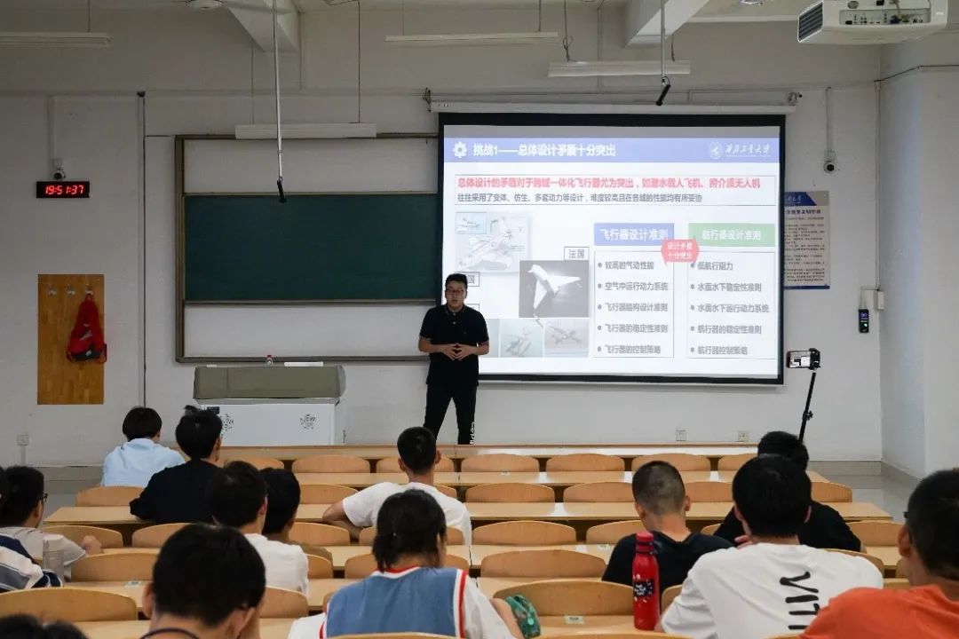 王老师指出,小型跨域无人系统当前面临着如下几种困境:总体设计矛盾十分突出、跨域方式有待改善、能源与动力系统的矛盾突出、载荷设备的性能仍不完善、机构与结构设计困难、跨域通讯方式复杂、以及智能化仍有待发展。但是,这些挑战中也蕴含着无限的发展潜力和应用机遇。王老师鼓励同学们在未来的科研生涯中关注并致力于此类系统,参会的同学表示受益匪浅。