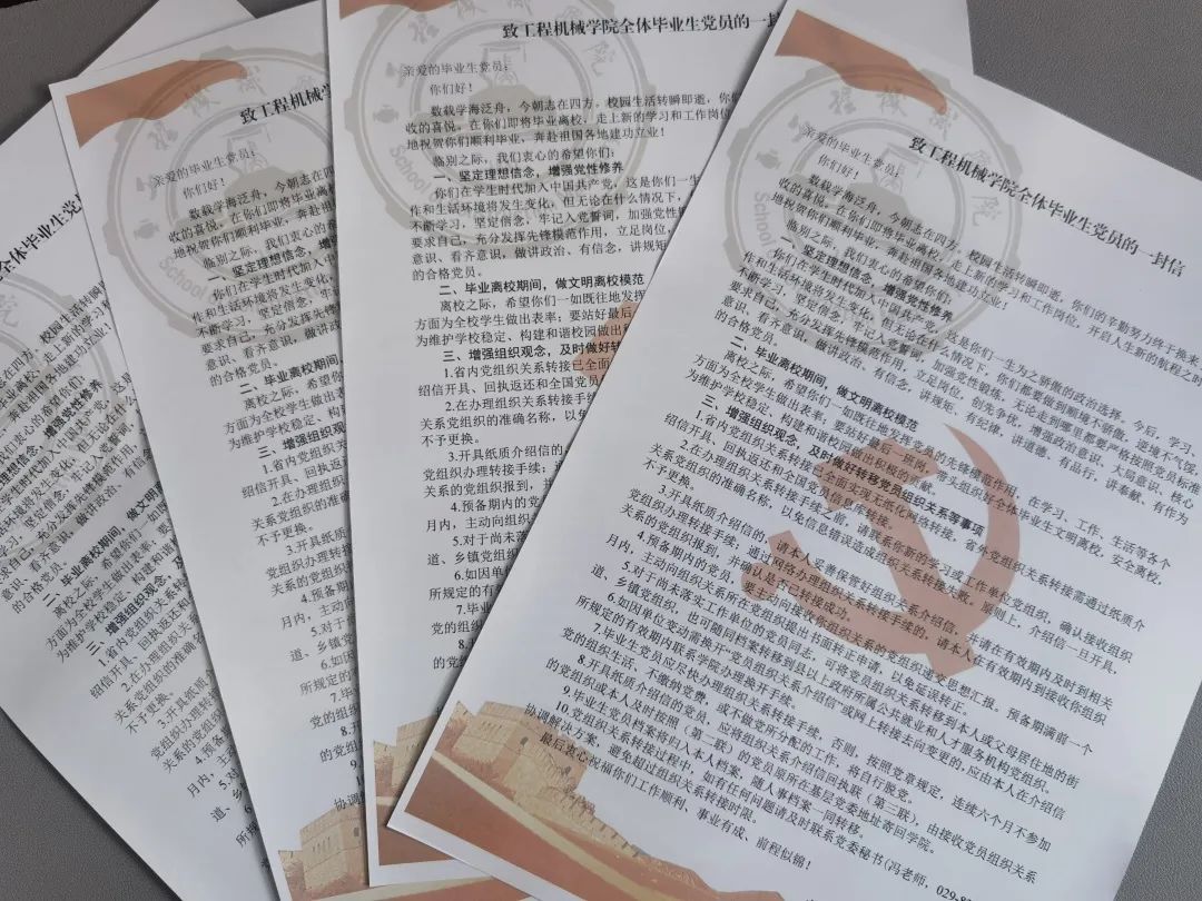 落实毕业教育,增强组织观念。大学毕业生党员的教育和管理工作是加强党的队伍建设的必然要求,学院党委印发了《致51吃瓜 全体毕业生党员的一封信》,对毕业生党员的离校进行了规范要求,首先要做到讲文明、做表率,毕业生党员在大学的最后时光里要严格遵守校规校纪,充分发挥先锋模范作用;其次要求做到程序清、手续明,毕业生党员一定要增强组织观念,做好党组织关系转接工作。