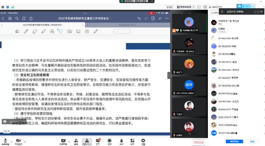 最后,高婷婷强调全体研究生要积极配合暑期各项工作,响应学校疫情防控号召,筑牢疫情防线,强化责任与担当意识。