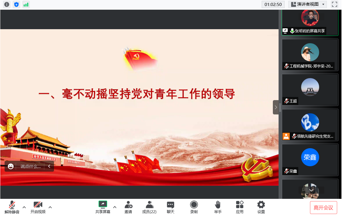 张眀岩分享了习近平总书记自党的十八大以来关于青少年和共青团工作最全面的论著《论党的青年工作》,该书是习近平总书记关于青年工作的重要思想的系统阐释。书中深刻阐明了党的青年工作的地位作用、目标任务、职责使命、实践要求,深刻回答了新时代培养什么样的青年、怎样培养青年,建设什么样的共青团、怎样建设共青团等方向性、全局性、战略性重大课题,把我们党对青年工作的规律性认识提升到了新的高度,具有十分重大的理论意义和现实意义。