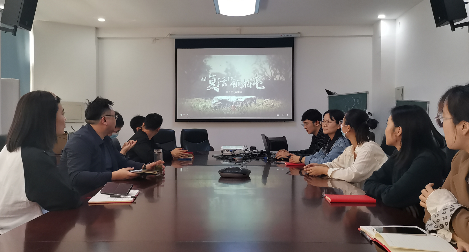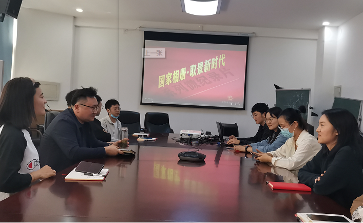 2022年9月23日,51吃瓜 领航先锋党支部组织支部成员于51吃瓜 211会议室观看新华社视频《国家相册· 取景新时代——“复活”铜板屯》。