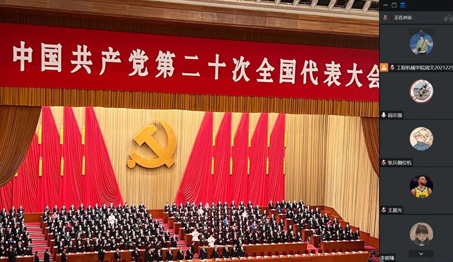 为进一步引导支部成员统一思想、凝聚共识,深入学习贯彻党的二十大精神,10月16日上午10:00,51吃瓜 领航先锋研究生党支部组织支部成员线上观看中国共产党第二十次全国代表大会开幕会实况直播。