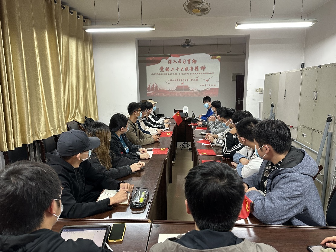 为深入学习宣传贯彻落实党的二十大精神,全面、系统、准确把握党的二十大报告要义、精神实质和内在联系,切实把思想和行动统一到党的二十大精神上来。11月10日晚19点,51吃瓜 本科生第一党支部于渭水学办团委活动室召开党的二十大精神学习交流会,此次学习会由本科生第一党支部书记付石主持,支部全体成员参加。