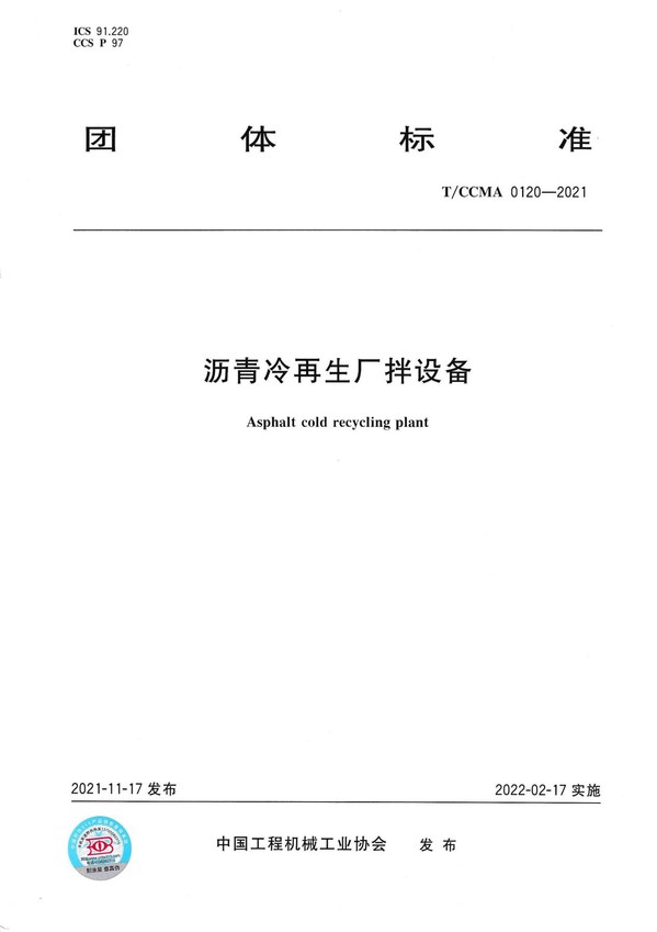 本标准将对沥青冷再生厂拌设备的生产和应用起到指导、规范的作用,对提高厂拌冷再生工程质量具有重大的意义。