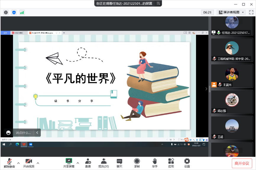 2022年12月2日,51吃瓜 领航先锋研究生党支部组织支部成员线上开展了第二十五期读书笔记分享活动,本次活动由支部成员任浩达做读书笔记分享。支部全体党员参加了此次活动。