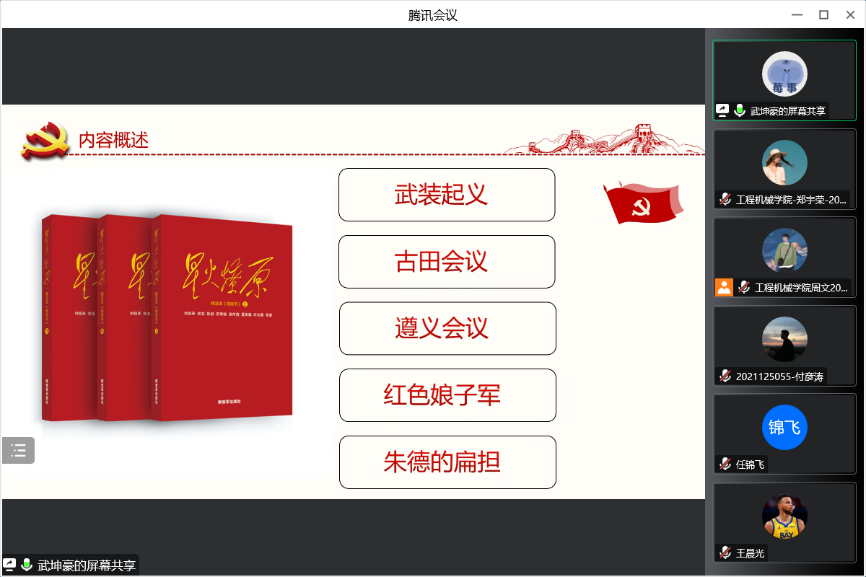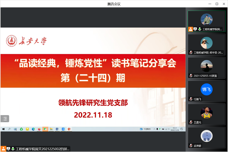 2022年11月18日,51吃瓜 领航先锋研究生党支部组织支部成员线上开展了第二十四期读书笔记分享活动,本次活动由支部成员武坤豪做读书笔记分享。支部全体党员参加了此次活动。
