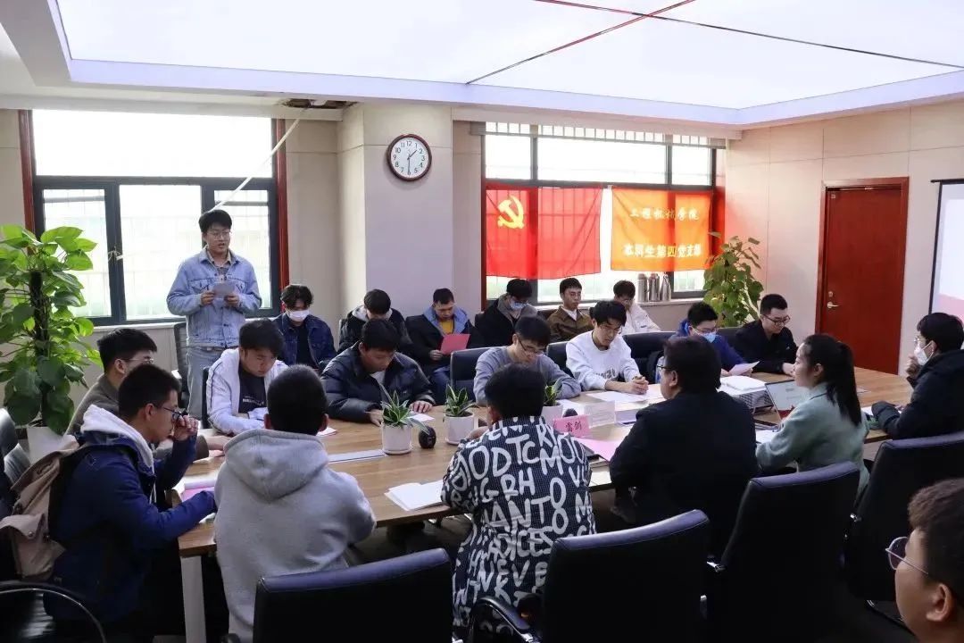 会议伊始,本科生第四党支部书记杨文佳领学《为实现党的二十大确定的目标任务而团结奋斗》。重点学习着重做好深刻认识我国发展面临的形势,始终保持战略清醒;继续推进党的理论创新,不断提高马克思主义理论水平;深刻把握中国式现代化的中国特色和本质要求,牢牢掌握我国发展主动权;扎实贯彻全面建设社会主义现代化国家各项部署,着力实现高质量发展;全面落实以人民为中心的发展思想,扎实推进共同富裕;深入推进新时代党的建设新的伟大工程,着力推动全面从严治党取得新成效六方面工作和牢记“国之大者”;全面增强本领;增强斗争精神保持清正廉洁四点要求。