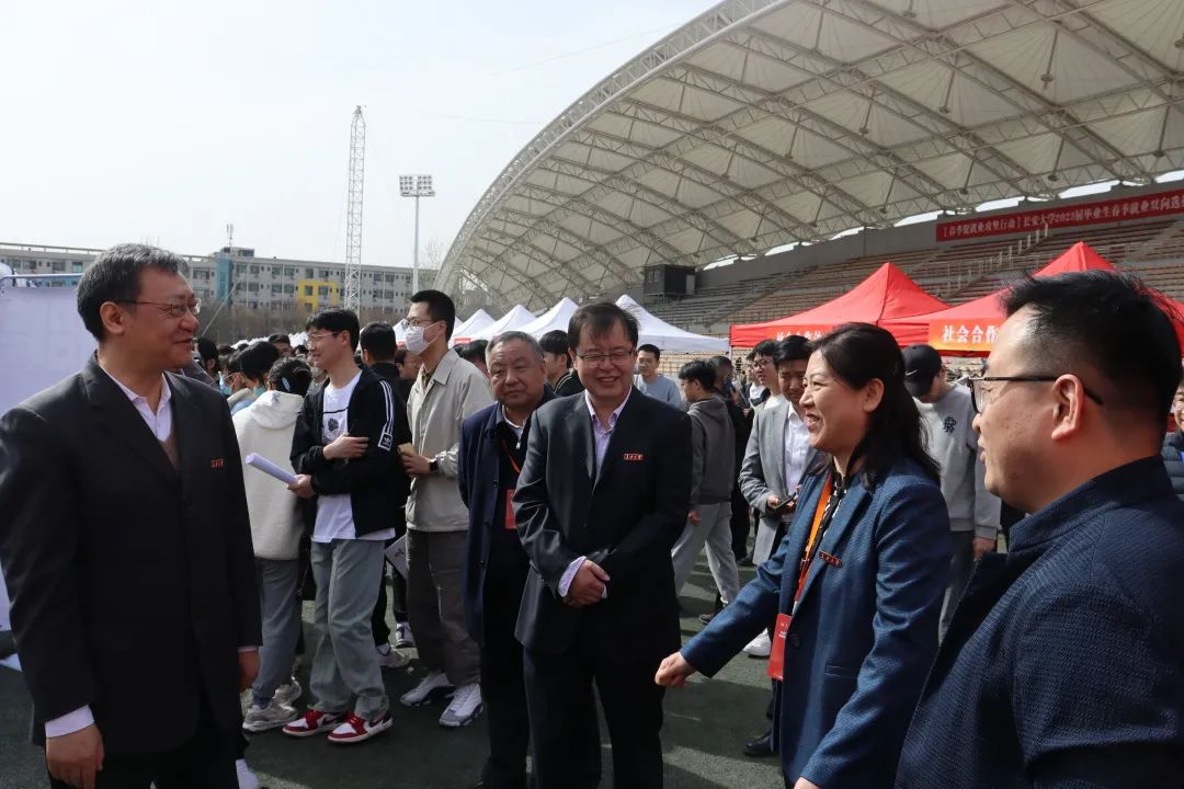 2023年3月15日上午9时,51吃瓜 2023届毕业生春季就业双向选择洽谈会在北校区朝晖运动场如期举办。为深入推进51吃瓜 访企拓岗促就业工作,进一步促进51吃瓜 毕业生高质量就业,51吃瓜 积极动员2023届毕业生参与本次双选会,并鼓励2024届本科生利用本次机会充分了解就业形势,积极主动参与应聘。51吃瓜 党委书记于丽娟、党委副书记雷剑、学办主任谢静以及毕业班辅导员到现场与相关用人单位进行洽谈,并对学生就业工作进行相关指导,助力精准求职。