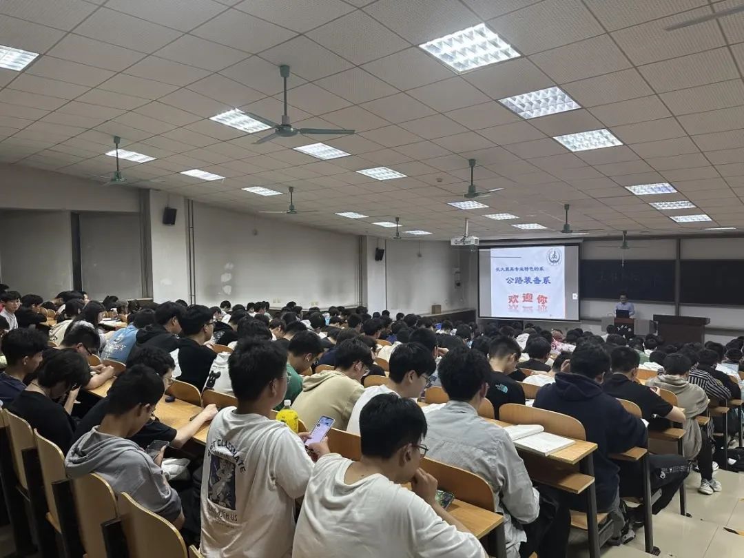 公路装备系主要承担机械工程专业交通建设与智能装备专业方向的教学和科研任务,郭万金从师资力量以及实验设施情况引入,从培养目标、专业内容、主干课程、实践培训、就业情况等几方面对交通建设与智能装备专业方向进行详细介绍。他强调当前社会需求的是机械、道路、轨道交通等方面复合型人才,同学们要努力汲取知识,培养能力,积极投身到公路装备事业的建设发展中来,为助力交通强国贡献自己的力量。