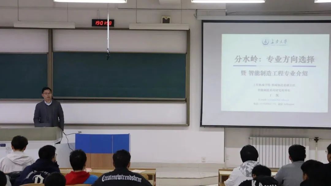 4月24日晚19:00,机械制造系丁凯老师为学生开展专业宣讲。丁凯老师以《分水岭:专业方向选择》为题,主要从专业设置背景、专业人才培养、专业前沿技术研究、师资力量、硬件环境、就业深造、优秀校友等方面做了全面解读。