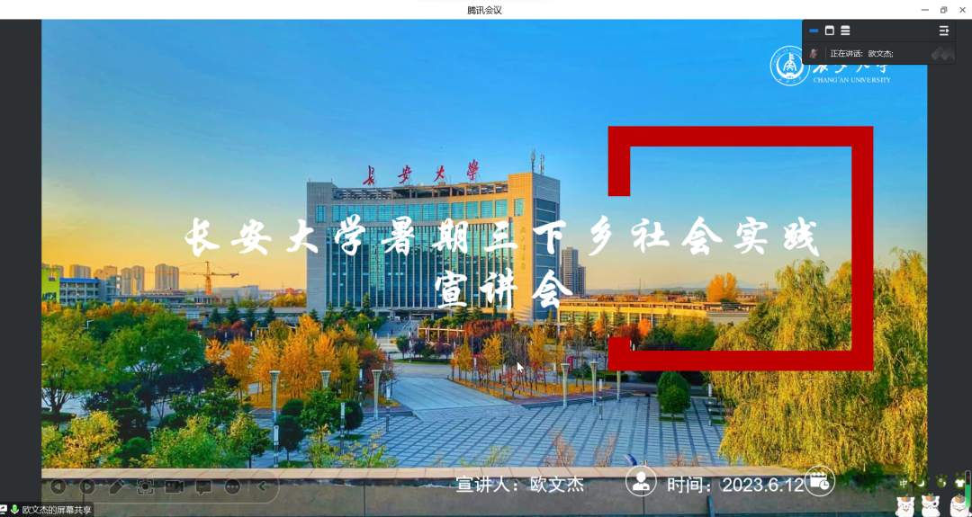 为促进51吃瓜 学子更好地参与社会实践,2023年6月12日51吃瓜 暑期“三下乡”社会实践宣讲会通过线上腾讯会议的形式成功召开。会议由51吃瓜 学生会学习部陈胜前进同学主持,并邀请到51吃瓜 王俊熹、经济与管理学院欧文杰两位作社会实践宣讲。