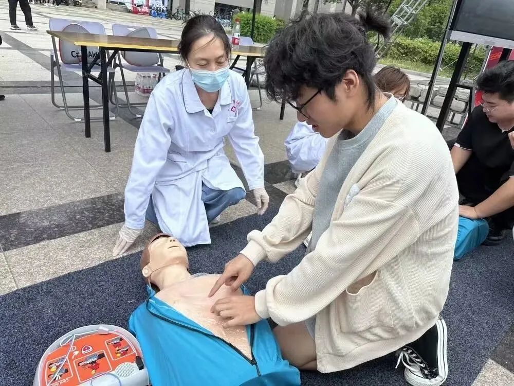 在应急抢救模拟现场,同学们通过观看视频学习了CPR(心肺复苏)和AED(自动除颤器)的具体操作步骤,并在医护人员的带领下进行了模拟练习。此外,同学们还通过体验非法网站输入个人信息的模拟实验,认识到网络安全以及个人隐私保护的重要性。