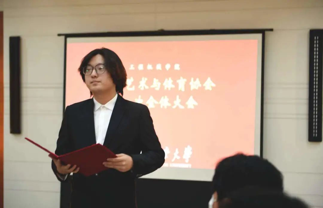 会议伊始,杨文佳老师致开幕词。杨老师首先对在场的同学表示欢迎,同时表达了对大家的认可,文体协会的新生力量在这一学年也在协会里发挥着相当重要的光和热。杨老师希望同学们能继续保持自己的劲头,看准自己的目标,踔厉奋斗,自强不息。