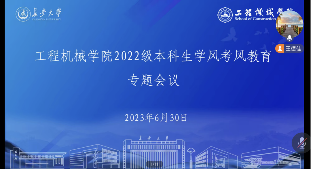 6月30日晚,年级通过线上方式召开学风考风教育专题会议,王德佳对本学年年级工作取得的各项成绩进行总结回顾,回答同学们近期关心关注的问题,并结合近期教务处通报的考试违纪案例开展警示教育,对考风考纪提出了要求,希望同学们能够提高思想认识、认识到作弊的危害性以及严重后果,扎实做好期末考试复习工作,诚实考试、诚信做人。
