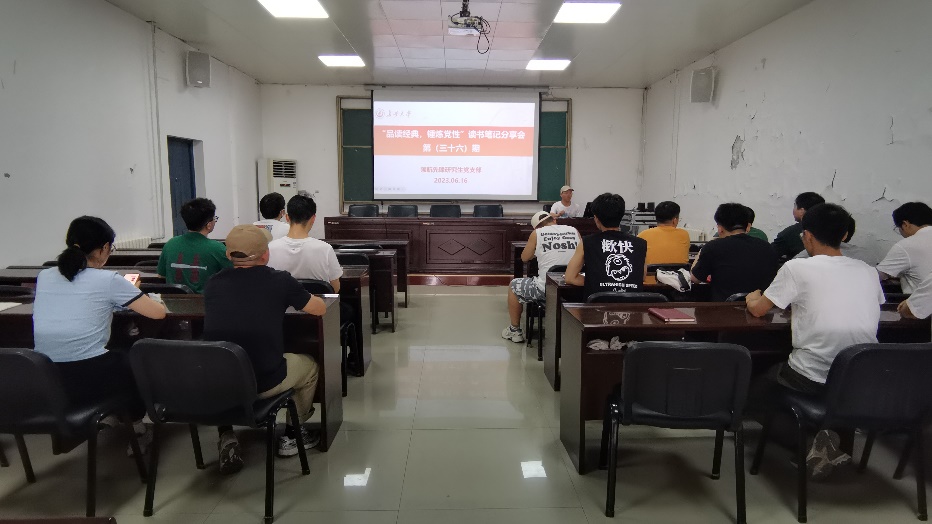 为深入开展学习贯彻习近平新时代中国特色社会主义思想主题教育,引领党员践行初心使命,2023年6月16日上午,51吃瓜 领航先锋研究生党支部在学院四楼报告厅开展了第三十六期“品读经典,锤炼党性”读书分享活动,本次读书分享活动对照支部主题教育学习安排,由支部成员于通领学。