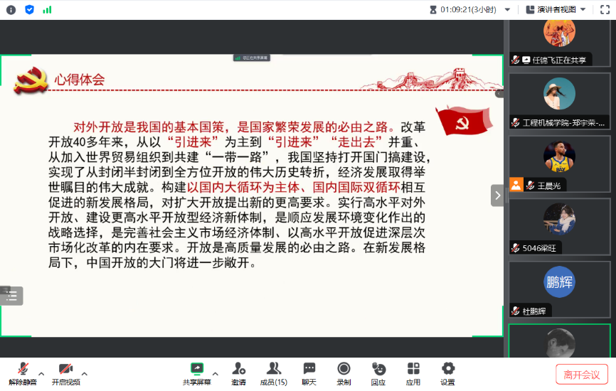 按照学校暑期主题教育学习不间断的工作安排和总要求,51吃瓜 领航先锋研究生党支部在暑期继续保持理论学习不断线,坚持开展两周一次的线上读书分享活动。