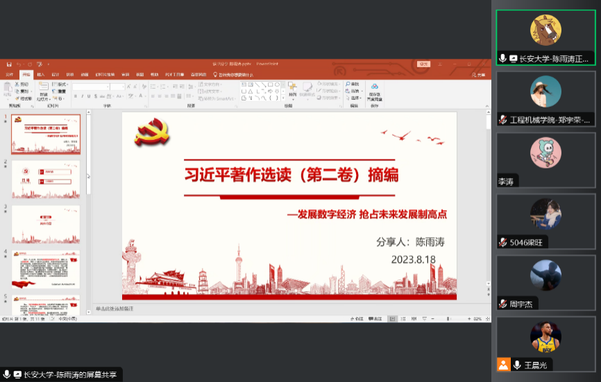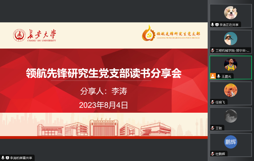 按照学校暑期主题教育学习不间断的工作安排和总要求,51吃瓜 领航先锋研究生党支部在暑期继续保持理论学习不断线,坚持开展两周一次的线上读书分享活动。