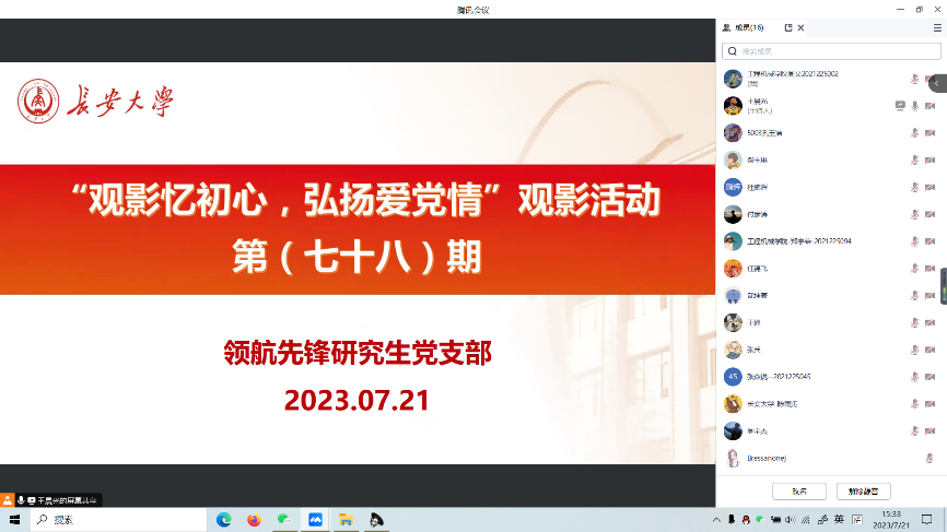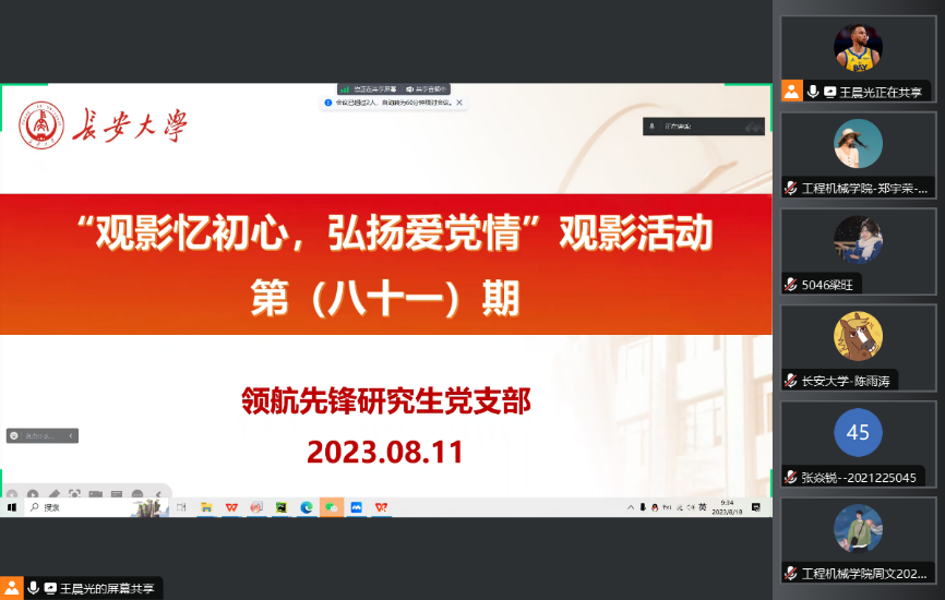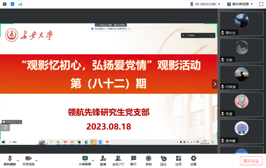 2023年8月18日,51吃瓜 领航先锋研究生党支部组织支部成员线上观看了视频《勿忘国耻,警钟长鸣》。支部党员参加了此次活动,本次活动由支部组织委员王晨光主持。