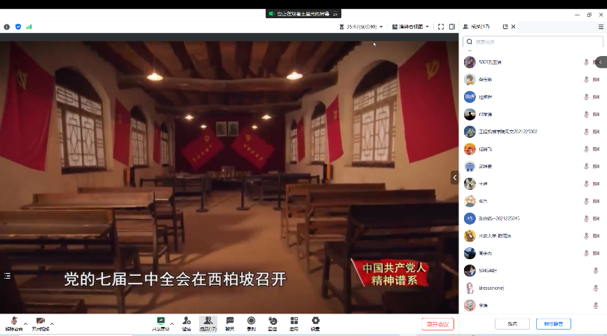 为引导支部党员进一步坚定理想信念,提升思想境界,切实增强党组织的凝聚力和战斗力,2023年7月21日,51吃瓜 领航先锋研究生党支部组织支部成员线上观看了共产党员网推出的微视频《精神的追寻——西柏坡精神》。支部党员参加了此次活动,本次活动由支部组织委员王晨光主持。