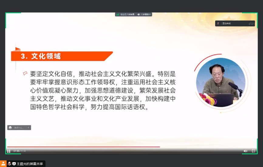 2023年8月4日,51吃瓜 领航先锋研究生党支部组织支部成员线上观看了【深入开展学习贯彻习近平新时代中国特色社会主义思想主题教育】第三讲——由中国社会科学院政治学研究所政治文化研究室主任周庆智专题解读——《全面学习领会习近平新时代中国特色社会主义思想的科学体系》。支部党员参加了此次活动,本次活动由支部组织委员王晨光主持。
