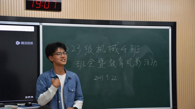 为加强班级凝聚力,明确班级目标,帮助大家更好地规划大学生活,9月22日,51吃瓜 2023级机械4班召开了第一次班会暨观影教育活动。本次活动由班长屈云玮、团支书张梓瑞等班委组织举办,2023级辅导员左意老师和全体同学参加。