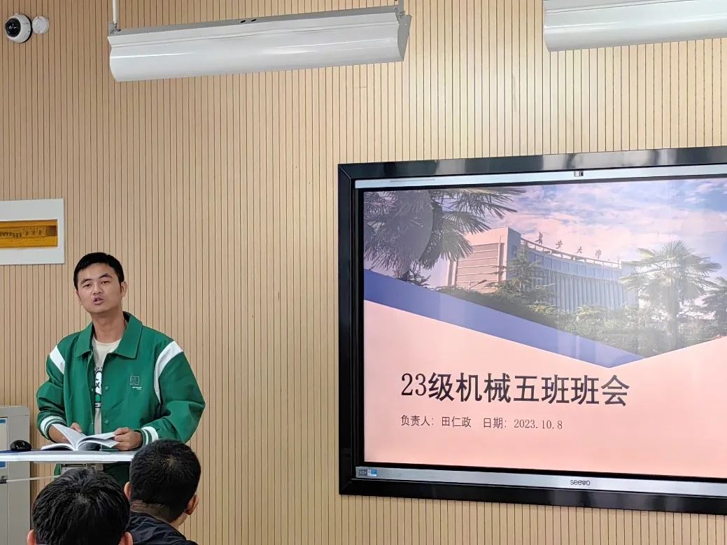 为传达学校相关文件要求,保证班级活动顺利开展,10月8日,51吃瓜 2023级机械5班召开了第一次班会。本次活动由班长田仁政、团支书乔佳鹏等班委组织举办,2023级辅导员左意老师和全班同学参加。
