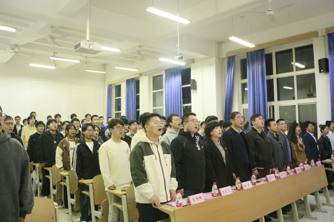 典礼在庄严的国歌声中拉开帷幕,2022级学生马玥瑶作为学员代表发言,她代表全体学员承诺将以身作则,遵守党课纪律,高效完成学习任务,争取早日成为一名合格的中国共产党党员,在建设中国式现代化的浪潮中贡献青春力量。