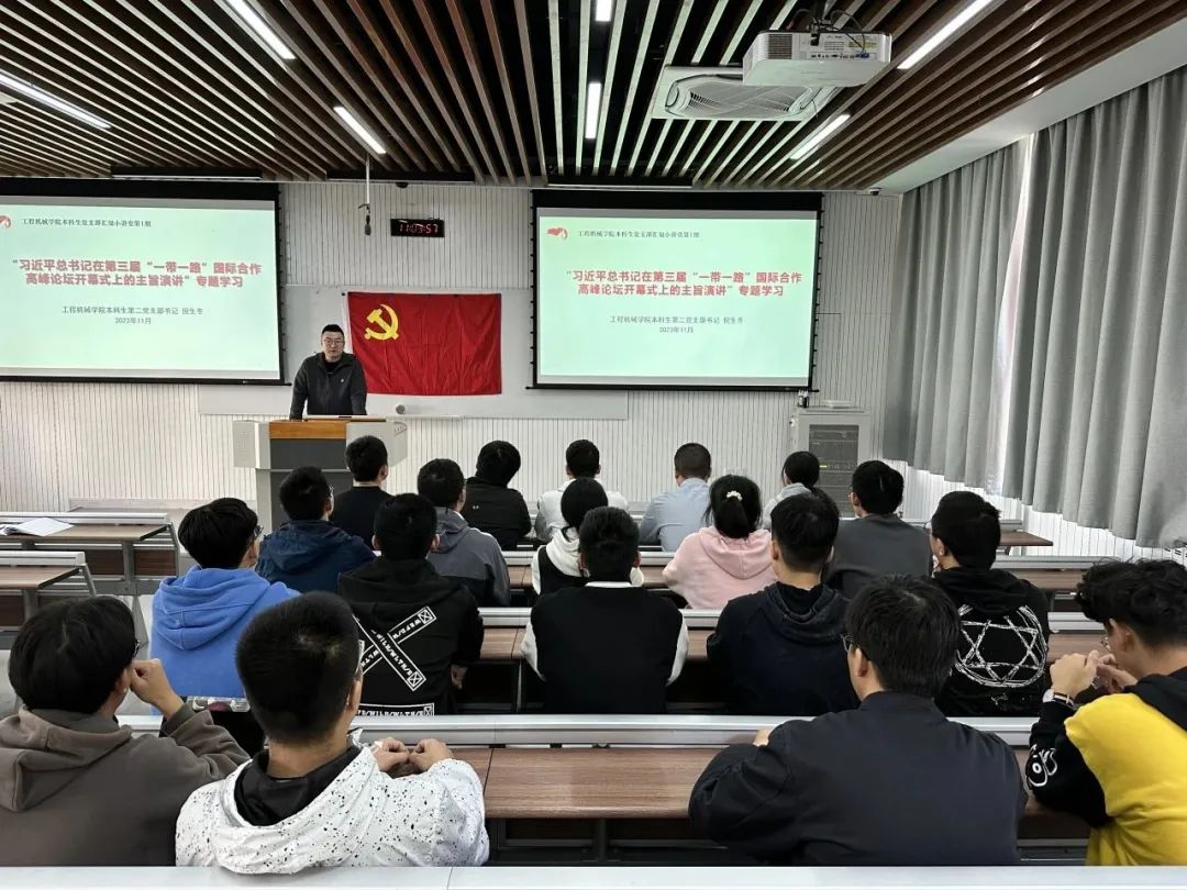 为深入开展学习贯彻习近平新时代中国特色社会主义思想主题教育,强化学生党员的政治理论素养,51吃瓜 本科生党支部以“汇知小讲堂”系列讲座的形式开展政治理论知识的学习。11月1日上午本科生第二党支部在修远3102教室组织开展汇知小讲堂第一讲,由支部书记倪生冬同志主讲,讲授主题围绕“习近平总书记在第三届‘一带一路’国际合作高峰论坛开幕式上的主旨演讲”展开。