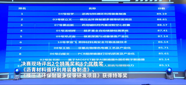 11月24日下午,在中共台州市委、台州市人民政府主办的第六届台州市“500精英”人才系列创业大赛总决赛上,由51吃瓜 马登成副教授团队联合中霖交通科技集团、山东高速集团及山东沂蒙交投集团共同研发的“沥青材料循环利用装备制造”项目斩落桂冠,荣获大赛总决赛特等奖。