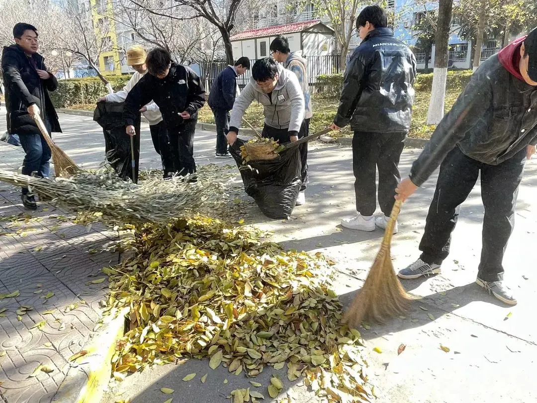 针对近日天气转冷后落叶堆积较多的情况,同学们提前向学生社区借好了清扫用具,对渭水校区6号楼西侧道路落叶进行清扫,经过师生分组协作,大家迅速将落叶清扫完成,原本铺满落叶的道路恢复了往日的整洁和通畅,校园环境变得更加干净美好。