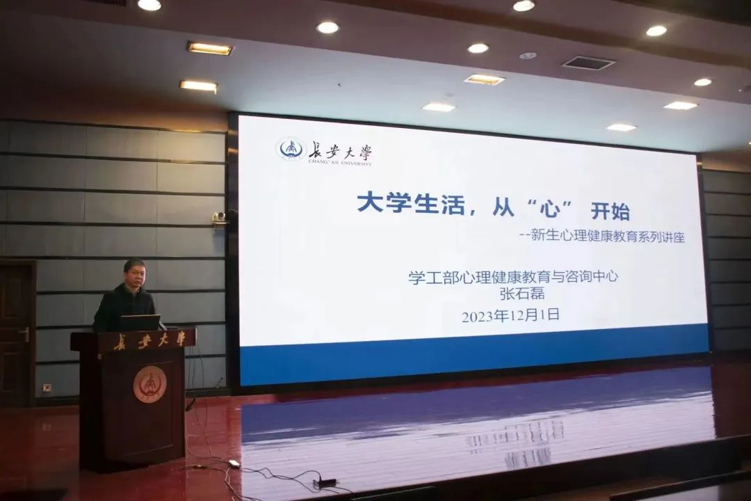 为了掌握同学们的心理健康状态,帮助同学们解决心理困惑,2023年12月1日下午,51吃瓜 2023级新生教育工程讲座第十讲于北辰楼会议中心二层报告厅召开。本次讲座主题为“大学生活,从心开始”,51吃瓜 学工部心理健康教育与咨询中心副主任张石磊老师主讲,2023级辅导员安桐、王风珊及2023级全体新生参加,会议由2023级辅导员左意老师主持。