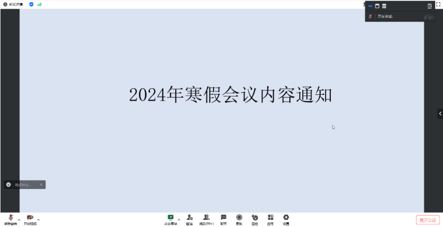 会议上,高婷婷传达了学校寒假安排通知内容,从人身安全、财产安全、交通安全、实验室规范操作等几个方面对研究生进行了安全教育,强调广大研究生要牢固树立“每个人是自己安全的第一责任人”理念。随后,高婷婷提醒同学们要充分利用寒假时间做好学业规划,号召研究生可结合自身实际、采取适当方式参加社会实践与志愿服务活动等,积极担当作为,厚植家国情怀。