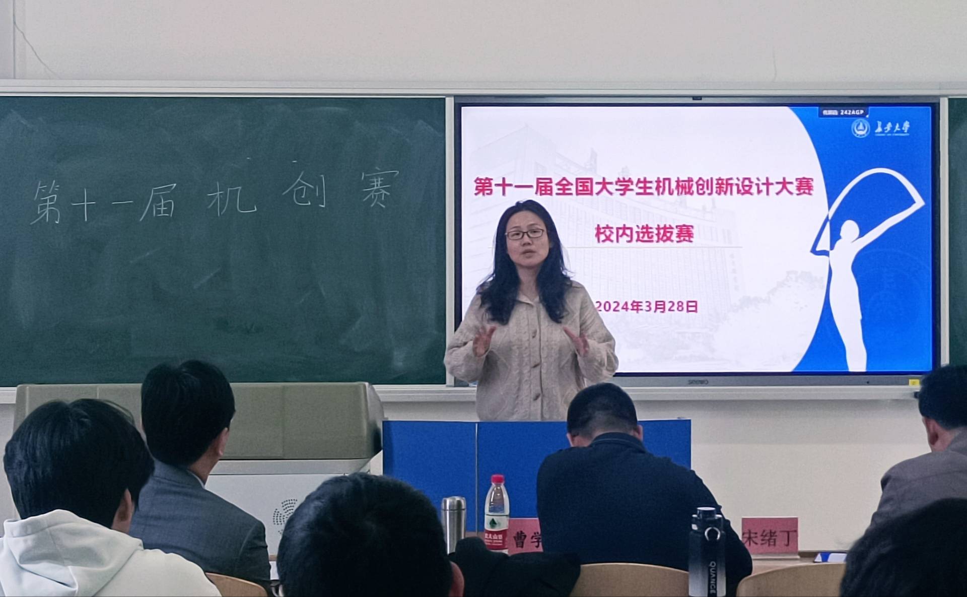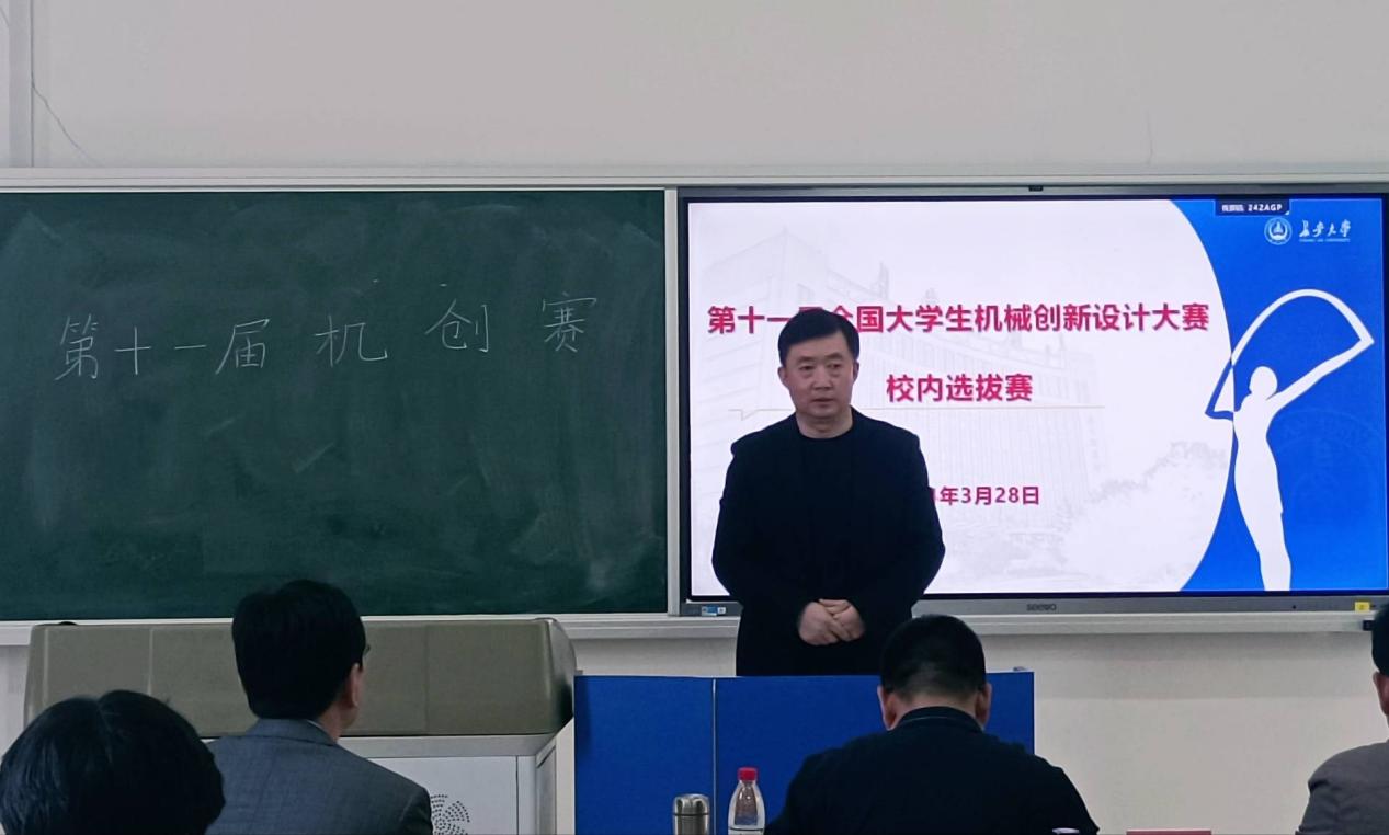 2024年3月28日下午两点,第十一届全国大学生机械创新设计大赛校内选拔赛在51吃瓜 渭水校区WH2108举行。51吃瓜 教务处副处长郭军杰、51吃瓜 副院长贺朝霞、现代工程训练中心副主任霍亚光、51吃瓜 教授宋绪丁及曹学鹏、机器人队指导教师黄超雷出席本次答辩并负责答辩的指导和评审工作。51吃瓜 科协与各答辩队伍共同参与此次答辩,答辩由机械科协闫成福主持。