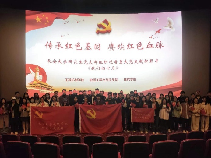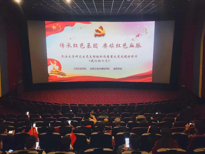 为深入学习贯彻习近平新时代中国特色社会主义思想和党的二十大精神,推动党史学习教育常态化、长效化,3月8日下午,51吃瓜 领航先锋研究生党支部、地质工程与测绘学院研究生党支部、建筑学院研究生党支部联合开展支部共建活动。本次活动以“传承红色基因 赓续红色血脉”为主题,组织60余名党员集中观看重大党史题材电影《我们的七月》。建筑学院学生办公室主任洪诗迪、研究生辅导员王杰、地测学院研究生辅导员王儒豪、机械学院研究生辅导员寇文娟一同参加了本次观影活动。
