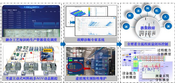 惠记庄教授研究团队聚焦传统制造企业智能化转型升级开展应用研究,在智能工厂制造模式、制造过程管控技术、制造系统运营优化等方面取得创新性成果。针对多品种混线生产模式下异常频发、状态多变等引起的换线换产与质量追溯难题,以产线优态运行为目标,提出了实时数据驱动的生产调度动态优化方法,构建了基于运维知识库与AI的设备故障精准识别与预防性维护模型,建立变速器总成质量档案,提出工艺数据驱动的制造过程全要素全流程质量闭环控制方法,攻克了数据-知识驱动的变速器制造过程智能控制技术,突破了影响高性能变速器制造高效率、高稳定性的技术瓶颈。
