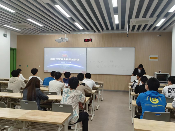 团支书组织同学们进行《总体安全观》教育短片的观看,深层次了解了国家安全观的内容,并着重强调了政治安全的意义。