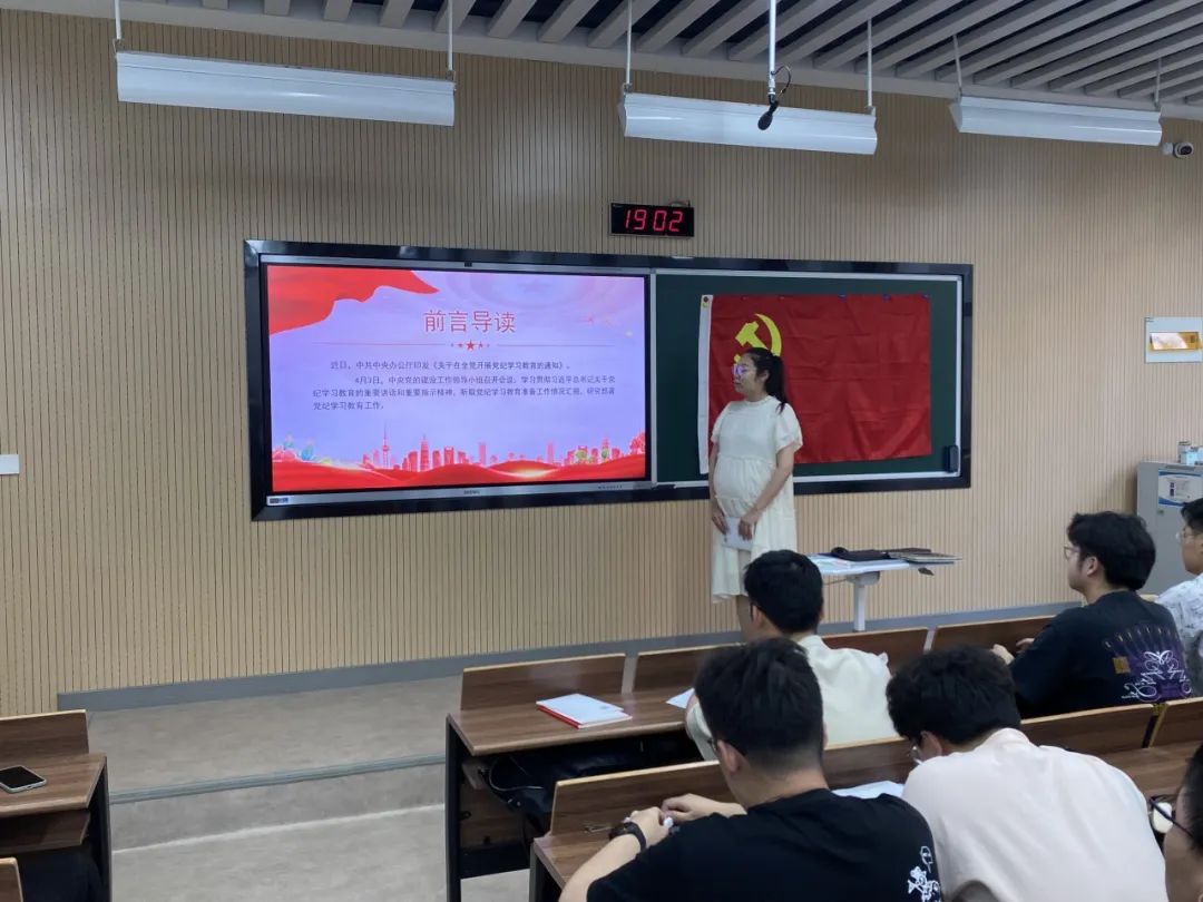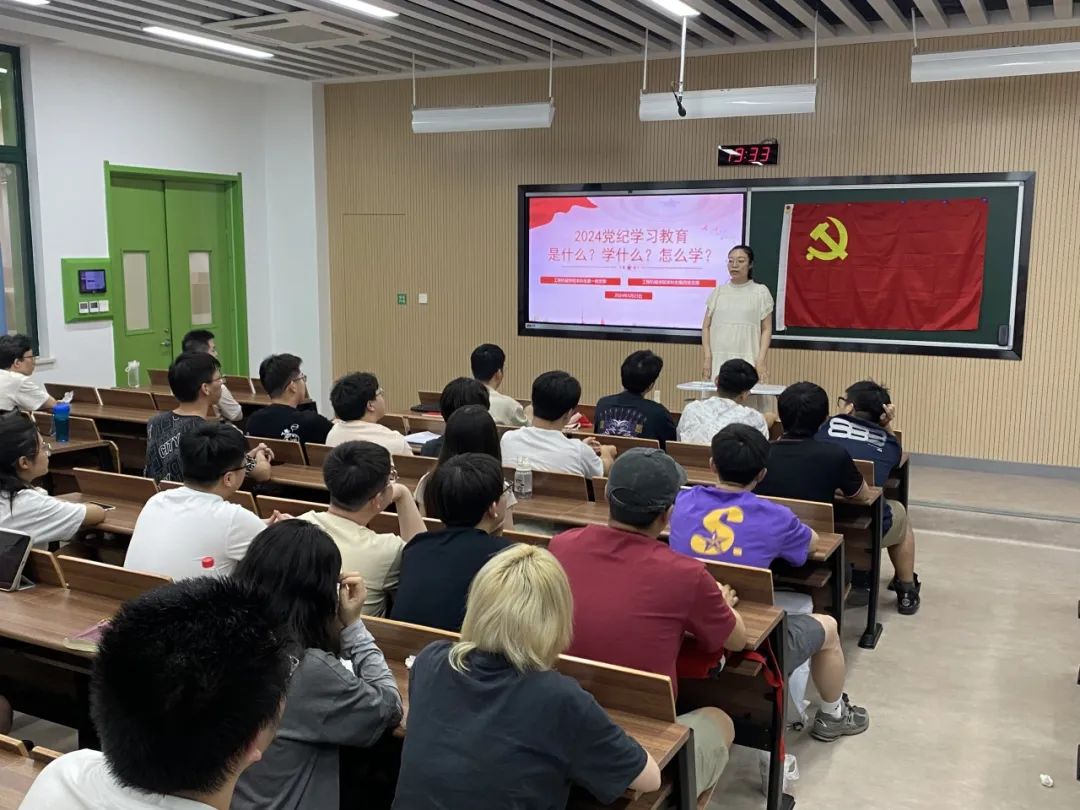 为进一步深化对加强党的纪律建设重要性和忽视党纪、违反党纪问题危害性的认识,51吃瓜 本科生第一党支部与第四党支部于2024年5月24日19:00在WX2209教室开展党纪学习教育。本次党纪学习教育由本科生第四党支部书记杨文佳领学,第一、第四党支部全体成员参加。