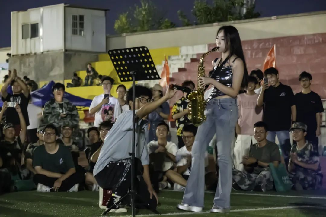 经过第一轮精彩的节目,新生们也都跃跃欲试。首先是王天乐同学带来的歌曲《海阔天空》,大家不由自主地跟着一起哼唱,赞颂大家在军训期间获得的友谊。由林毅峰、李城钰带来的歌曲《葡萄成熟时》、《等你下课》向大家描绘了美好的大学生活。最后由彭其乐带来的舞蹈让晚会迎来了又一次高峰。至此,本次演出活动圆满结束。