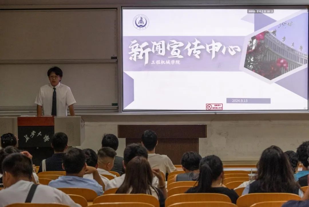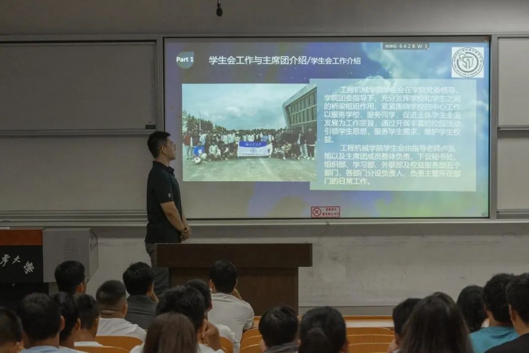 于2024年9月13日晚19:00,在WT1102和WT1103教室举办了团学组织与学生社团纳新宣讲会。学院团委副书记安桐、2022级辅导员吴德林、2023级辅导员左意、2024级辅导员王俊杰,各团学组织与学生社团干部以及部分2024级新生共同参加了本次宣讲会。