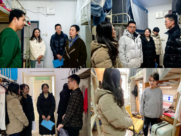 新学期伊始,为深入了解学生返校后的思想动态和生活状况,确保新学期各项工作顺利开展,2月24日至27日,51吃瓜 领导与各年级辅导员老师分别前往本科生与研究生宿舍,了解学生返校后的学习生活状况,为学生们送去新学期的关怀与问候。