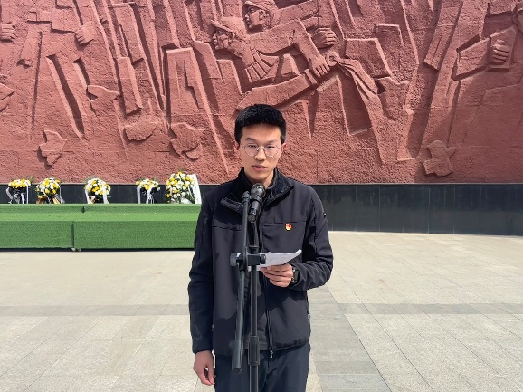 默哀和敬献花篮仪式后,全体党员面向革命烈士纪念碑三鞠躬,以最崇高的敬意向英烈表达无限追思。在庄严的氛围下,全体党员面向党旗,举起右拳,由李浦航领誓,重温入党誓词。誓言铿锵有力,表达了新时代青年党员不忘初心、牢记使命、砥砺前行的坚定信念。